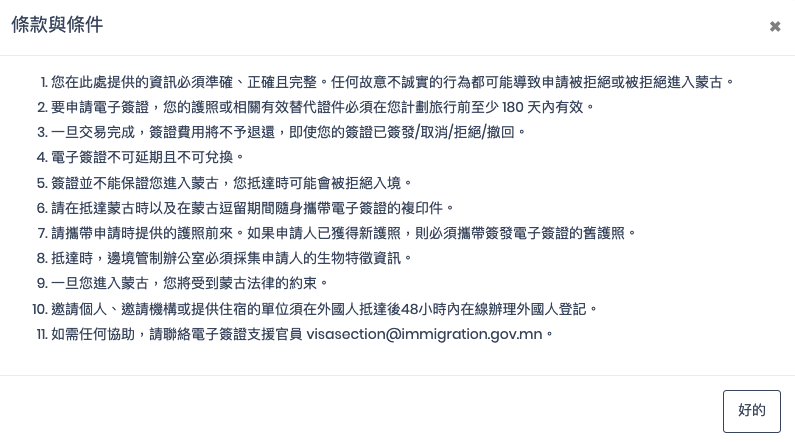 蒙古電子簽證(E-VISA)申請Part 4:資料確認